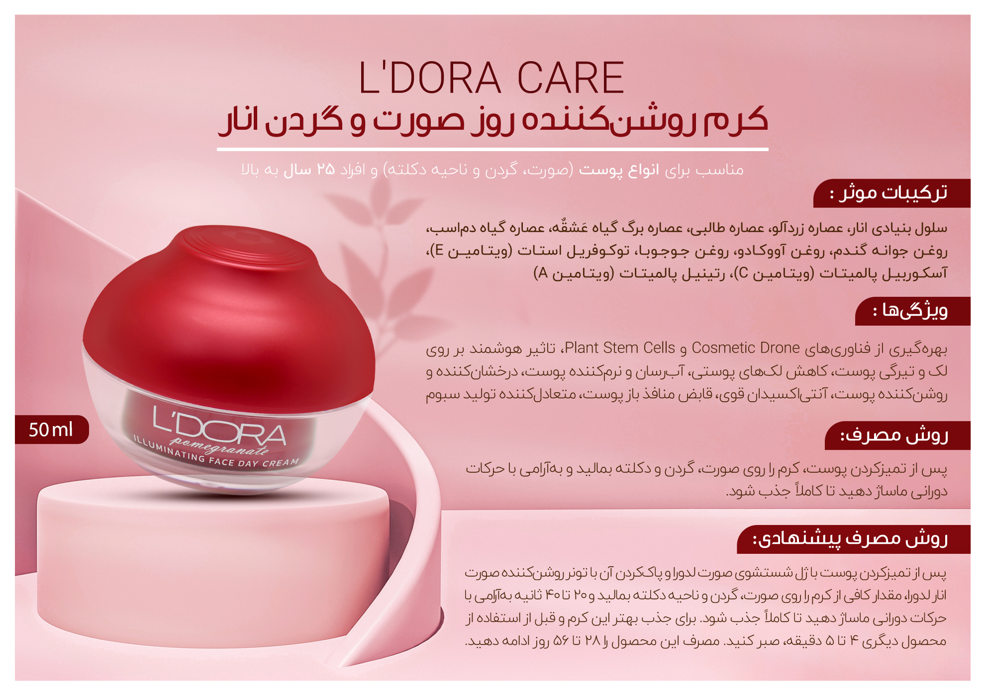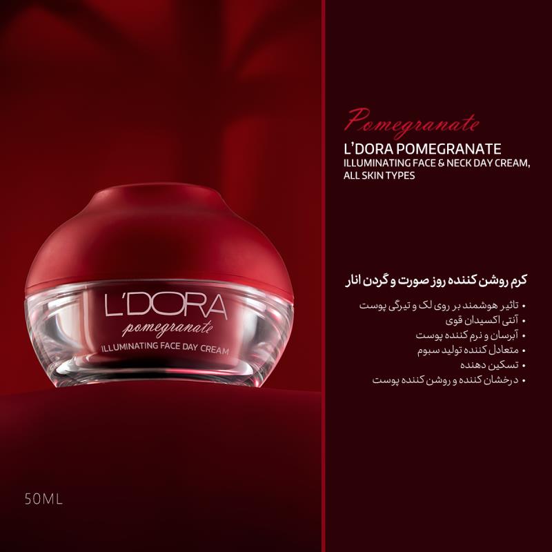 L’DORA POMEGRANATE ILLUMINATING FACE & NECK DAY CREAM, ALL SKIN TYPES, 50 ml